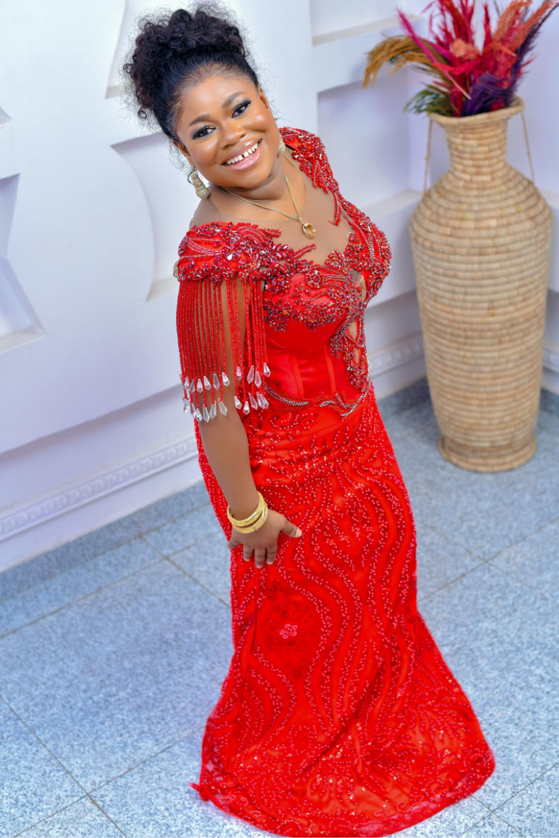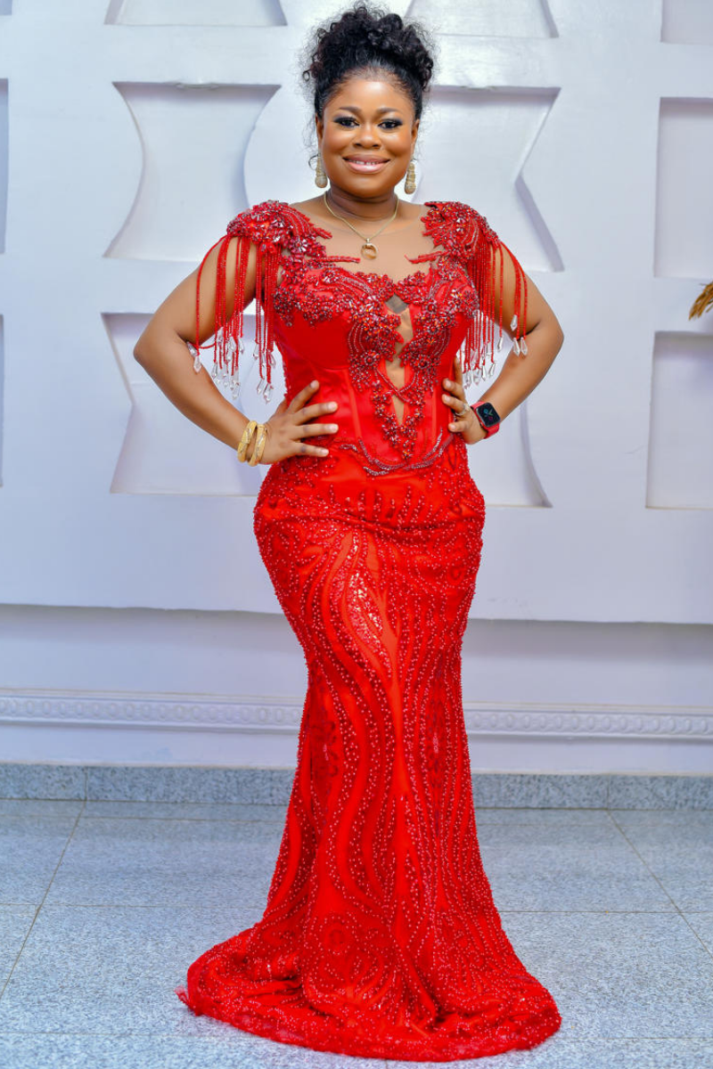 Ravishing in red: ignite the night with the fiery allure of this PEARL PANACHE BEADED LACE. Draped in elegance, adorned with passion, effortlessly enchanting and undeniably chic, this outfit is a timeless classic with a modern twist, an epitome of sophistication.